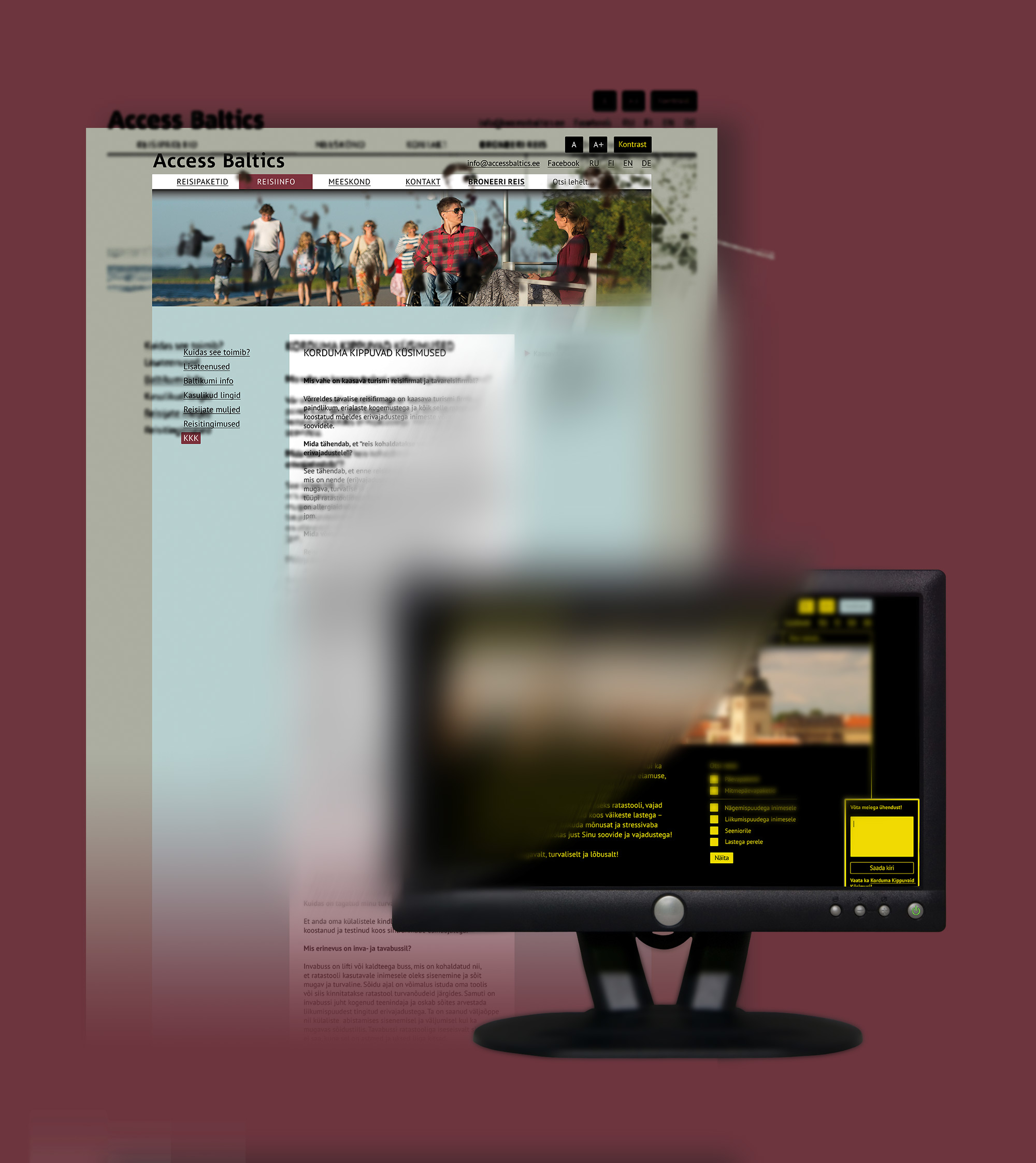 Lõputöö tellijaks oli reisifirma Access Baltics, kes korraldab kaasava turismi reise. Meie eesmärgiks oli olemasoleva kodulehe ümberkujundamine vastavalt veebi ligipääsetavusstandardile WCAG (Web Content Accessibility Guidelines) 2.0 AA., lisaks struktureerisime ümber ka lehekülje sisu ja ajakohastasime välimust. Pidasime oluliseks, et leht ise ei oleks külastajale tajutav kui “erivajadustega inimeste leht” ja et ükski aluseks olevatest põhimõtetest ei torkaks rõhutatult silma, vaid oleks lihtsalt osa meeldivast ja loogilisest kasutajakogemusest.
